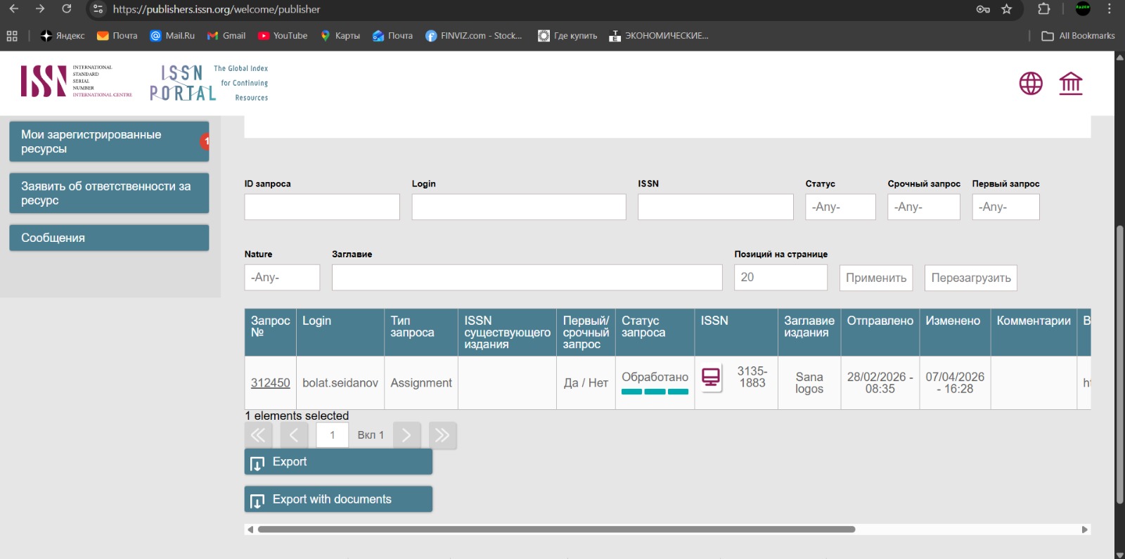 Біздің журналдың халықаралық стандартты сериялық нөмірді (ISSN) ресми түрде алғанын қуанышпен хабарлаймыз. Бұл біздің басылымның халықаралық деңгейде танылуына және ғылыми-ақпараттық кеңістіктегі мәртебесінің артуына жасалған маңызды қадам.